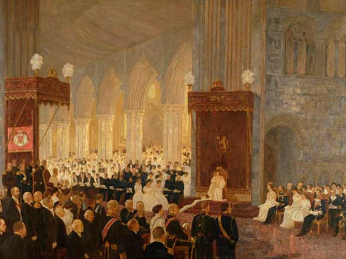 Nidarosdomena ledje divodeame, muhto olles girkolatnja váldojuvvui atnui ruvdnendilálašvuođas, vai nu ollu olbmot go vejolaš besse čuovvut ruvdnema. Ja ledje ge badjelaš 2300 olbmo duopmogirkus dalle. Seremoniija jođiheigga Nidaros bisma, Vilhelm Andreas Wexelsen ja Oslo bisma, Anton Christian Bang, searválaga.