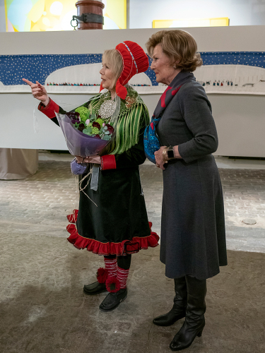 - Sápmi lea álo nu ovddolaš! Majestehta Dronnet sávai buresboahtima ovdal go Sámedikki presideanta Aili Keskitalo rabai dan stuora sámi dáiddačájáhusa DáiddaStáljas duorastateahket.