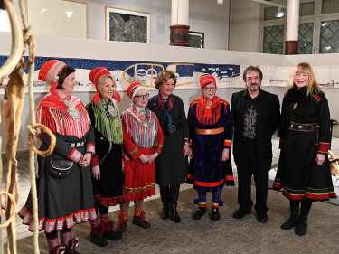 Gurutbealde: Sámedikki presideanta Aili Keskitalo, Synnøve Persen, Britta Marakatt-Labba, Dronnet, Rose-Marie Huuva, Arnold Johansen ja Inger Blix Kvammen. Govva: Heiko Junge, NTB scanpix