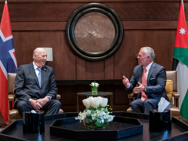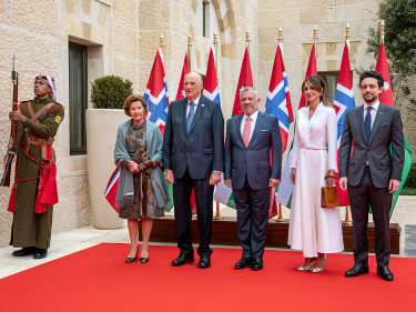 Odne sávai Majestehta Gonagas Abdullah II Majestehta Gonagas Haraldii ja Dronnet Sonjai buresboahtima Jordanii. Lea vuosttaš geardi go Gonagasbárra lea stáhtaguossin Gaskanuortan.