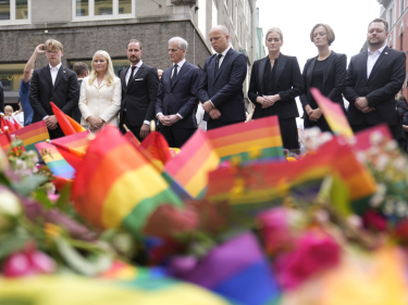 Sihke stáhtaministtar Jonas Gahr Støre, ráđđemusmiellahtut, Oslo sátnejođiheaddji Marianne Borgen ja gávpotráđi jođiheaddji Raymond Johansen bidje liđiid olggobeallai báikki gos dát ilgdis vearredahkku dáhpáhuvai.