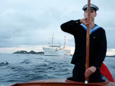 Gili lávlunjoavku loahpahii guossástallama lávlumiin, ja dasto vulggii Ruvdnaprinsabárra viidáseappot mátkkotit Gonagasskiipii mii lea olggobealde Mandal.