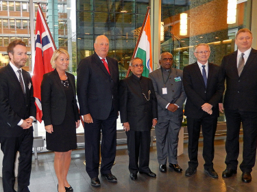 India ja Norgga ovttasbargu ealáhus-ja kultureallimis lei guovddážis stáhtaguossástallama nuppi beaivvi. Majestehtaguovttos Gonagas ja Dronnet čuovuiga H.E. Presideantta Pranab Mukherjee ja Sharmistha Mukherjee.