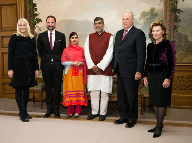 Odne oaččuiga Kailash Satyarthi ja Malala Yousafzai Nobel Ráfibálkkašumi. Gonagasbárra ja Ruvdnaprinsabárra ledje Oslo Ráđđeviesus, gos ráfibálkkašumi vuostáiváldiguovttos oaččuiga liekkus buresboahtima, olbmot čuoččahedje ja doško gieđaid sudnuide.