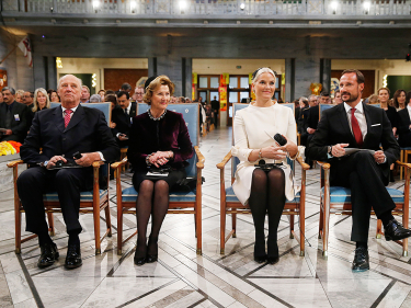 Eahkes leat Gonagas Harald ja Dronnet Sonja, Ruvdnaprinsa Haakon ja Ruvdnaprinseassa Mette-Marit fárus árbevirolaš feastamállásiin mat lágiduvvojit Grand Hoteallas gudnin ráfibálkkašumi vuitiide.