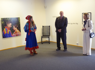 Sátnejođiheaddji Knut Store vuostáiválddii Gonagas Haralda ja Dronnet Sonja go soai olliiga Várjjat sámi museai. Johan Andersen juoiggastii Gonagasbárrii buresboahtinluođi.