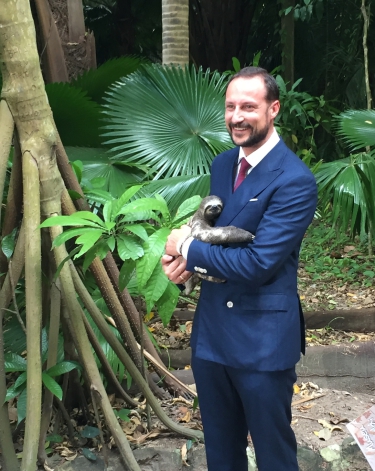 Ruvdnaprinsa Haakon doalai seminára loahpahansáhkavuoru. Son rámidii Brasila barggu arvevuovddi suodjaleami oktavuođas ja dan movt sii suodjalit Amazonasa girjáivuođa: