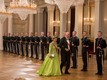Majestehta Gonagasa Garde láidesta. Sii maršerejit Šloahtas Opera guvlui diibmu 18.15. Diibmu 18.30 vuodjigohtet sihke dán riikka ja olgoriikkaid guossit sin maŋis.