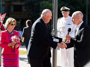 Vuordimis bohtet ollu Argentinas ássi norgalaččat dien báikái odne dearvvahit Gonagasbára ja čuovvut seremoniija gos sátnejođiheaddji Larreta addá Gonagas Haraldii ja Dronnet Sonjai "gávpotčoavdaga". Čoavdda lea Norgga ja Argentina ustitvuođa symbola.