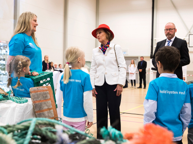 Gonagasbárra čuovvu Straumen skuvlla prográmma ovttas fylkkamánniin Hill-Marta Solberg. Govva: Berit Roald / NTB Scanpix