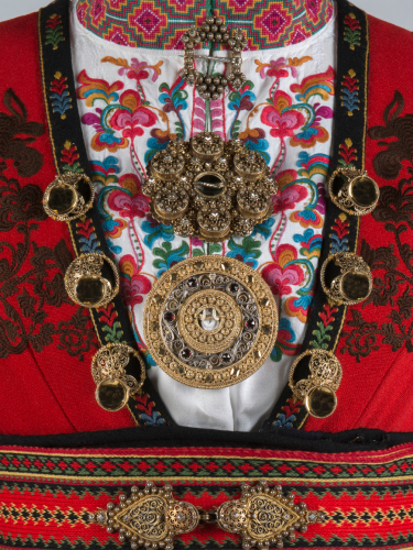 Utstillingen omfatter bunader fra Akershus, Rogaland, Vest-Agder, Setesdal, Namdalen, Telemark, Hordaland, Oppland, Buskerud, Møre og Romsdal. Flere vakre samiske drakter er også med.