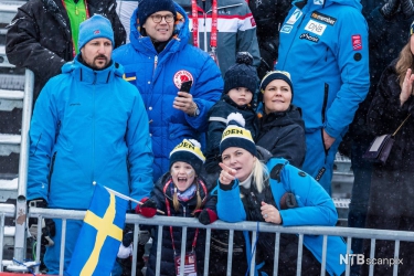 Kronprinsparet og den svenske Kronprinsessefamilien under kvinnenes superkombinasjon i Åre. Foto: Dana Press / NTB scanpix
