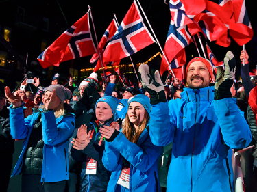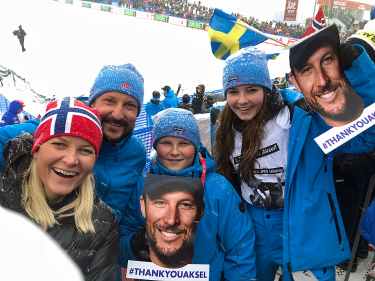 På kvelden var Kronprinsfamilien til stede på medaljeseremonien etter VM-utforen og festen som markerte avslutningen av Aksel Lund Svindals aktive alpinkarriere.