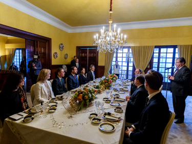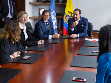 Kronprinsen startet dagen i frokostmøte med Colombias utenriksminister Carlos Holmes Trujillo. Det ble et interessant møte i samtale om utviklingen i landet og UNDPs rolle i Colombia. De to diskuterte også forholdet mellom Norge og Colombia, og den norske støtten til fredsarbeidet - forhold utenriksministeren kjente svært godt til, som tidligere ambassadør til Norge.