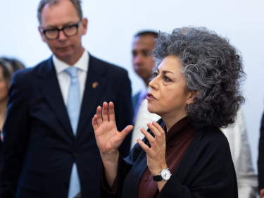 Den colombianske kunstneren Doris Salcedo fortalte om museet og våpnene som ble smeltet om. Foto: FN-sambandet / Eivind Oskarson