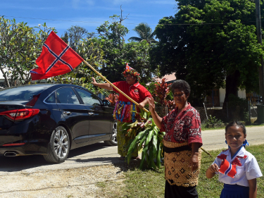 Fuaamotu girdihámmana earroseremoniijas lávllui dát joavku "Norge i rødt, hvitt og blått" Ruvdnaprinsii - dárogillii. Govva: Sven Gj. Gjeruldsen, Gonagaslaš hoavva