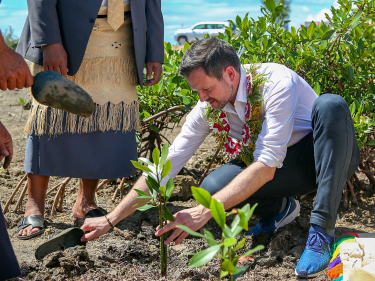 Ruvdnaprinsa Haakon beasai dearvvahit muhtun fuolastuvvon 'Ahau Beach ja Kolovai beach ássiid odne. Sii muitaledje mot áhpi dađistaga borrá eatnamiid, ja báhkke gittiide. 'Ahau báikkis leat ássit gilvigoahtán mangrover miestagiid ja muoraid gáhtten dihtii áhpegátti. Mangrove muorat šaddet hui bures go lea ollu čáhci, ja daid ruohttasat veahkehit čatnat ja stabiliseret eatnama. Odne oaččui giláš veahki Ruvdnaprinssas ja ovddidanministaris, geat gilvviiga goabbá ge ovtta muora.