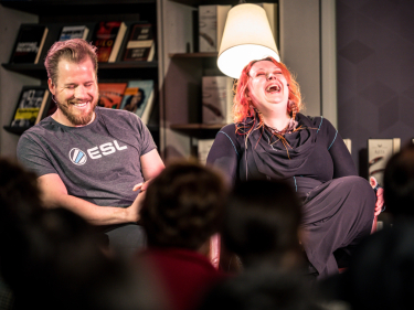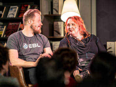 Kjetil Jansrud og Siri Pettersen - en leser og en forfatter - møttes til samtale om fantasylitteratur. Foto: Simen Prestaasen, Sporveien