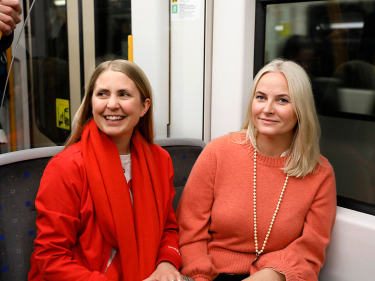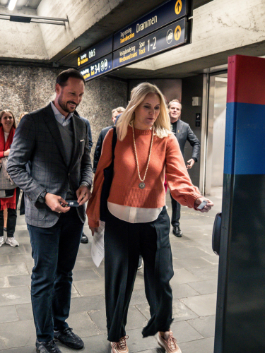 I formiddag gikk Kronprinsparet om bord på T-banen på Nationaltheatret stasjon retning øst. Tøyen var dagens første stopp for Kronprinsessens Bokbane, før Furuset og Stovner.
