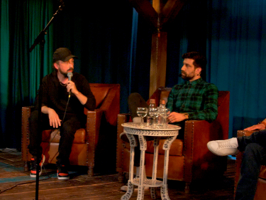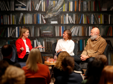 Silje Nordnes i samtale med Erlend Loe og Janne Stigen Drangsholt om humor i litteraturen. Foto: Marius Gulliksrud, Stella Pictures