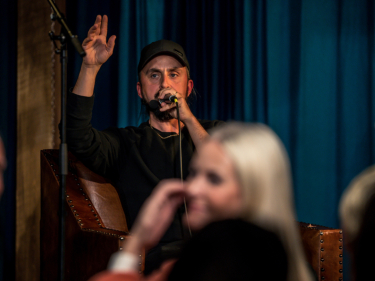 Også i dag var Silje Nordnes fra P3 programleder, og framme på Tøyen bibiliotek innledet Taro Cooper - norgesmester og skandinavisk mester i slampoesi - det kulturelle programmet.
