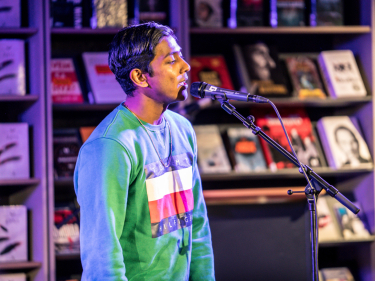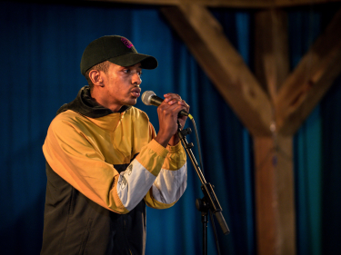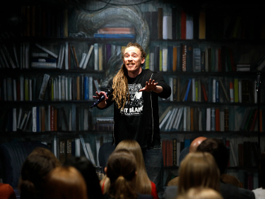 Slampoeten Taro Cooper i aksjon på Deichman Tøyen. Foto: Ole Berg-Rusten / NTB scanpix