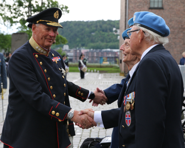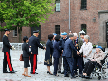Gonagas Harald dearvvaha NORMASH sanitehtaveaga veteránaid. Govva: Sara Svanemyr, Gonagaslaš hoavva