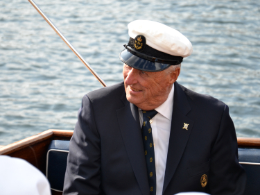 Kong Harald følgjer regattaen frå Kongebåten Stjernen. Foto: Christian Ruscetta, Kongelig Norsk Seilforening