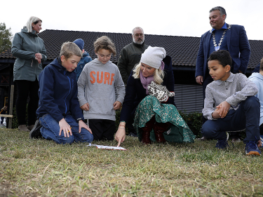 Ruvdnaprinsa Haakon searvvai spábbačiekčamii Loar skuvllas. Govva: Marius Gulliksrud, Stella Pictures