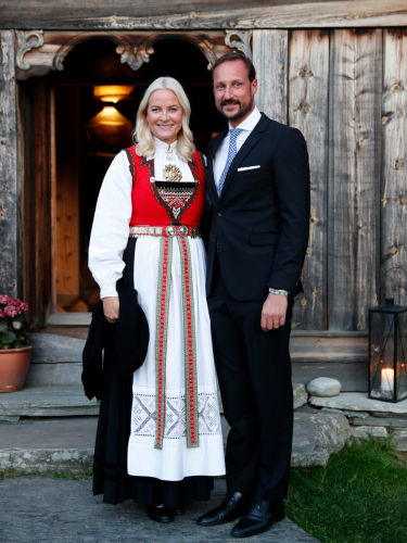 Ruvdnaprinsa rahpá Brubakken johtolatbirasdoaimma ovttas Ruvdnaprinseassain Mette-Marit ja Lom sátnejođiheddjiin, Bjarne Eiolf Holø. Govva: Stian Lysberg Solum / NTB scanpix
