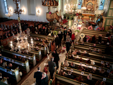 Gisttu olggos guottidettiin čuojahuvvui Johann Sebastian Bach«Passacaglia c-mollas». Seremoniija loahpahuvvui bielluid čuojahemiin. Laura Marie Rueslåtten čuojahii Jon Håtuna «Arie for Ari».