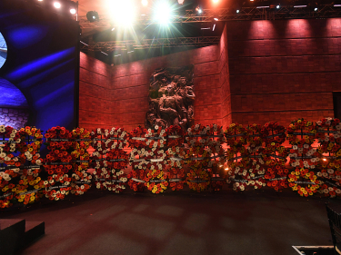 Etter talar frå både Israels president, Hans Eksellense herr Reuven Rivlin, og ei rekkje andre statsoverhovud og leiarar vart sjølve minneseremonien innleidd ved at overlevande frå Holocaust, Rose Moskowitz og Colette Avital, tende ein fakkel til minne om alle som omkom.