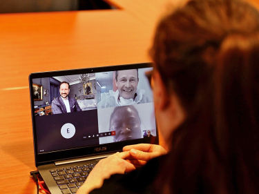 Naemy Trandum Aasen fortel om den nye arbeidskvardagen i videomøte med Kronprinsen. Foto: Ove Ronny Haraldsen, Kongsberg Gruppen