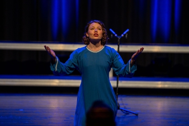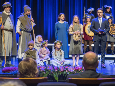 Nuoraidsátnejođiheaddji Håkon Skram Heggen doallá sártni Gonagasbárrii Florø kulturviesus.