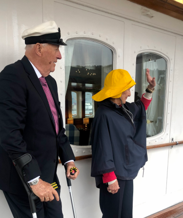 Smávvafatnasat čuvvo Gonagasskiipa Norge káijái Florøas – gos Gonagasbárra lávkii gáddái ja galledii Florøa kulturviesu ságástallat ja gullat olbmuid dili birra pándemiija áigge.