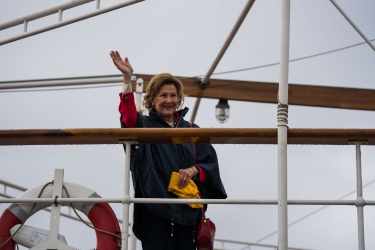 Gonagas ja Dronnet vázziba Gonagasskiippas vulos gáddái. Govva: Heiko Junge / NTB