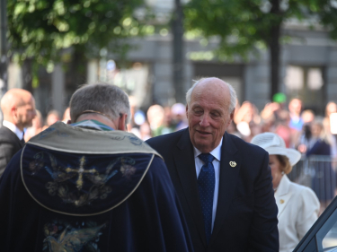 Majestehtat Gonagas ja Dronnet leigga muitoipmilbálvalusas Oslo duopmogirkus, gosa eatnagat čoagganedje liđiid buktit terrorfalleheami beivviid maŋŋel.
