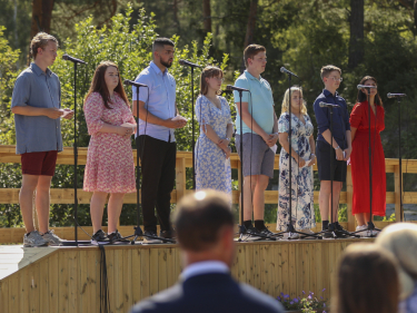 Seremoniija Utøyas loahpahuvvui káijas. Doppe lohke buot sin namaid geat dan beaivve gottáhalle Utøyas ja Ráđđehuskvartálas. Maŋŋel lohkama lei minuvtta jaskes boddu ja de bidje rássebotnosiid brukka ala, ovdal go Magnus Aannestad Oseths čuojahii «Til ungdommen» (“Nuoraide”) trumpehtain. Das maŋŋel máŋgasat bidje sin iežaset liđiid káijaravdii.