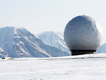 Satelihttastašuvdna SvalSat – dá arvat čábbát dálkkis go dat mii lei Ruvdnaprinsabára galledeamis. Stašuvdna lea oassin Kongsberg Satellite Services infrastruktuvrras. Govven: Tor Richardsen / NTB SvalSat