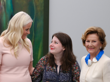 Hennes Majestet Dronningen og Hennes Kongelige Høyhet Kronprinsessen var til stede under åpningen av utstillingen “Åpne dører” i Dronning Sonja KunstStall i går kveld. Utstillingen består av 100 verk av 50 kunstnere fra Dronning Sonjas egen kunstsamling.