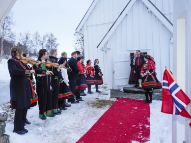 Ruvdnaprinsabárra vásihii Setesdala musihkkalaš árbbi Bykle boares girkus, dá Annbjørg Lien ja Daniel Sanden Warg.Govven: Lise Åserud, NTB