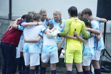 Samling i laget før avspark på Skaugum. Foto: Terje Pedersen / NTB