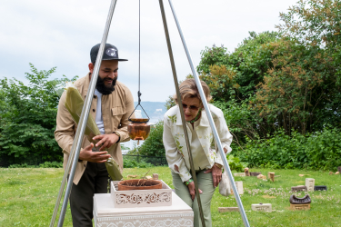 Kunstnerne forteller om forklarer om verkene sine. Foto: Øivind Möller Bakken / De kongelige samlinger