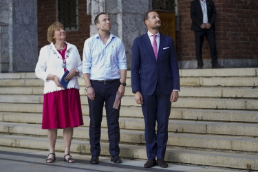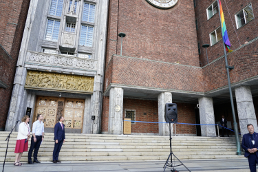 Hans Kongelige Høyhet Kronprins Haakon var til stede da Oslo kommune heiste regnbueflagget utenfor Oslo rådhus. Dette markerte starten på Pride-feiringen i hovedstaden.