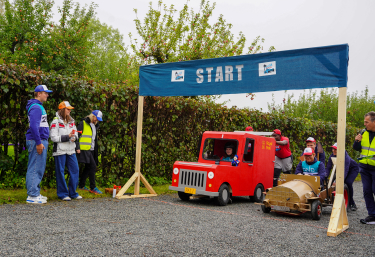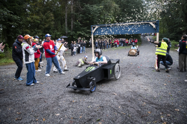 Ungdom fra UngInvest og andre prosjekter Kronprinsparets fond støtter var invitert til å delta i olabilløpet "Skaugum Grand Prix". Foto: Sara Svanemyr, Det kongelige hoff