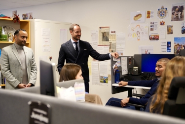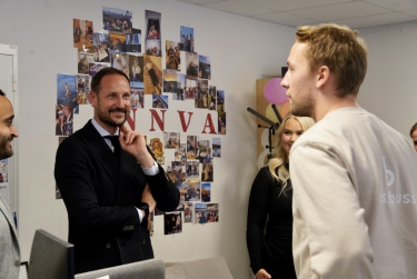 Kronprinsen fikk en omvisning i lokalene til Jussbuss og møtte mange av saksbehandlerne. Foto: Sara Svanemyr, Det kongelige hoff