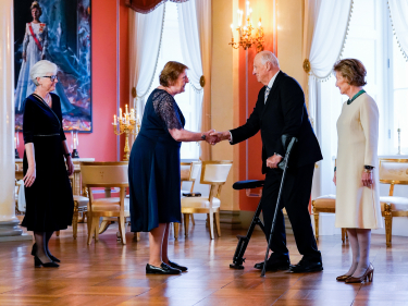 Medaljemottakarane og følgjet deira vart først tekne med på ei omvising i dei vakraste romma på Slottet, før dei vart ønskte velkomne av Hans Majestet Kongen og Hennar Majestet Dronninga i Lille festsal.