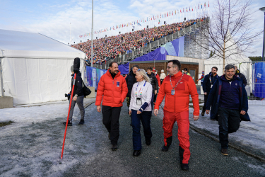 Alle konkurranser under mesterskapet arrangeres i Granåsen, som er et toppmoderne anlegg for nordiske grener. Torsdag var Hennes Majestet Dronningen på plass på kongetribunen i langrenssarenaen sammen med Kronprinsparet. Kong Carl Gustaf av Sverige var også til stede.