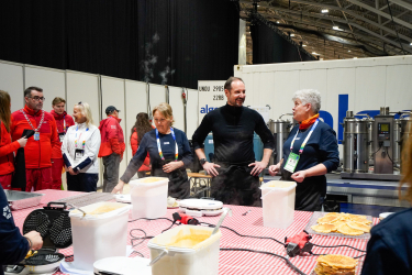 Under besøket til frivilligsenteret fikk Kronprinsen blant annet ta del i vaffelsteking og høre mer fra noen av de mange frivillige som allerede har lagt ned mange dugnadstimer før mesterskapet.