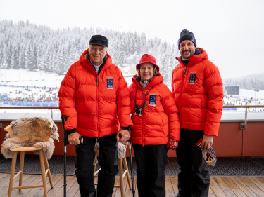 "Team Pølsa" ble tatt i mot av Dronning Sonja og Kronprinsparet på kongetribunen etter innsatsen i VM-løypene. Foto: Simen Sund, Det kongelige hoff